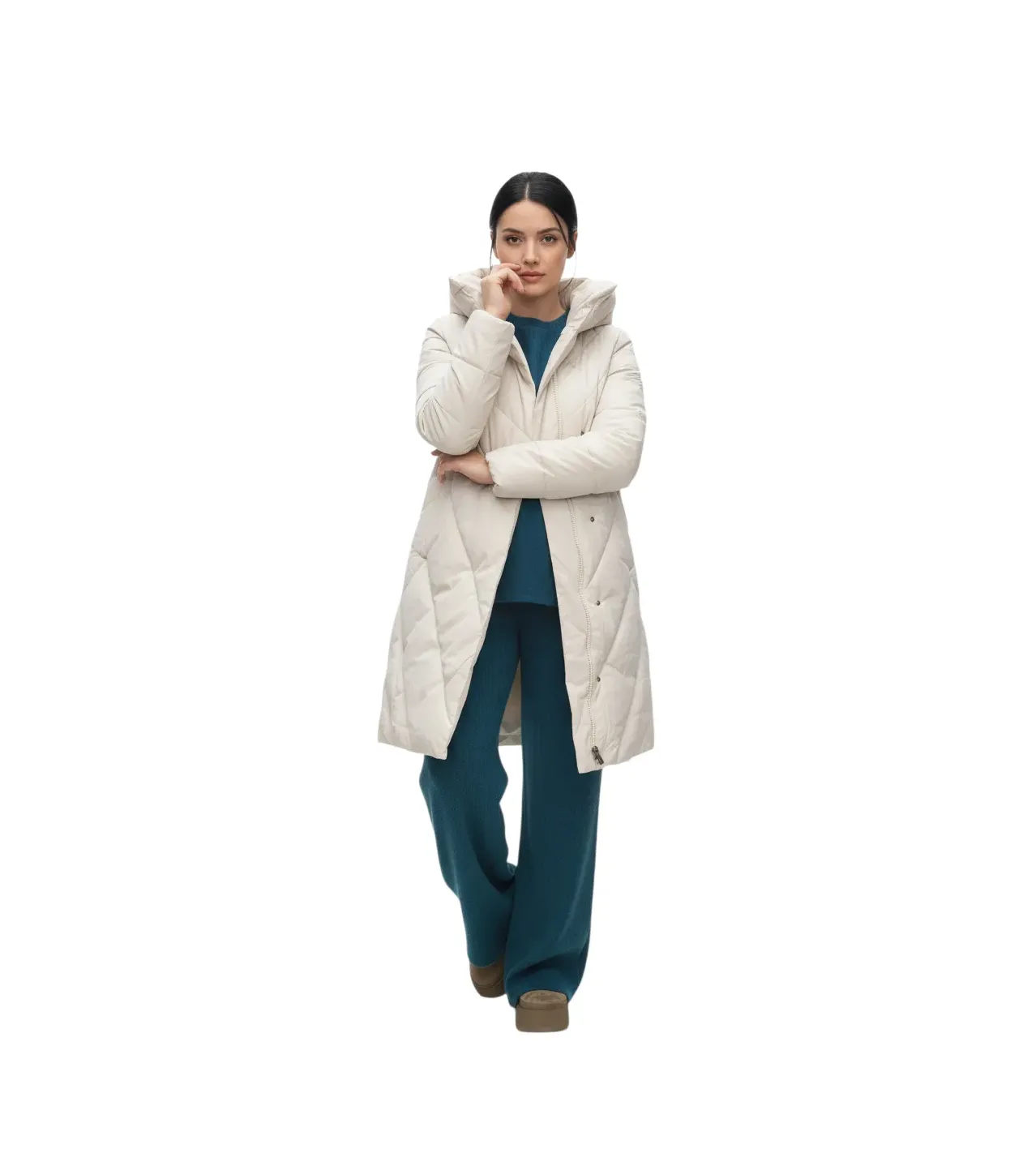 Γυναικείο χειμωνιάτικο μπουφάν μακρύ, σε regular fit γραμμή, ιδανικό για ζεστές και κομψές καθημερινές εμφανίσεις.