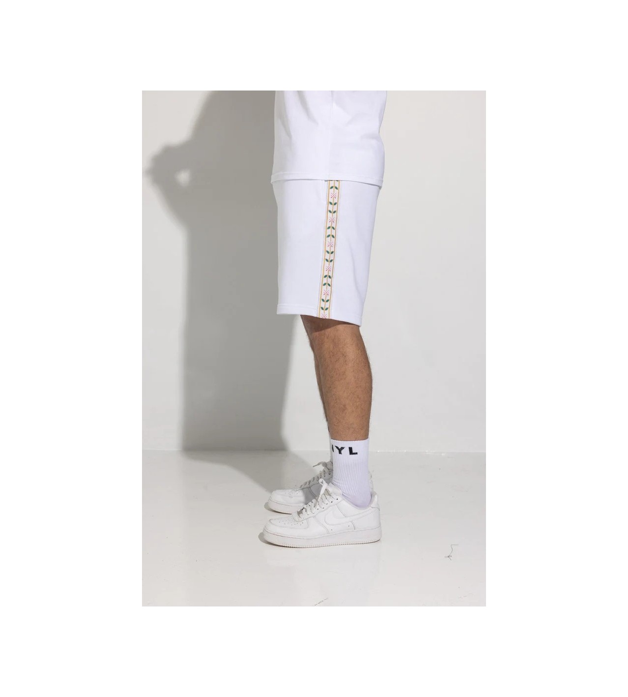 Vinyl βερμούδα με τρέσα λευκή cotton regular fit - leafs tape shorts