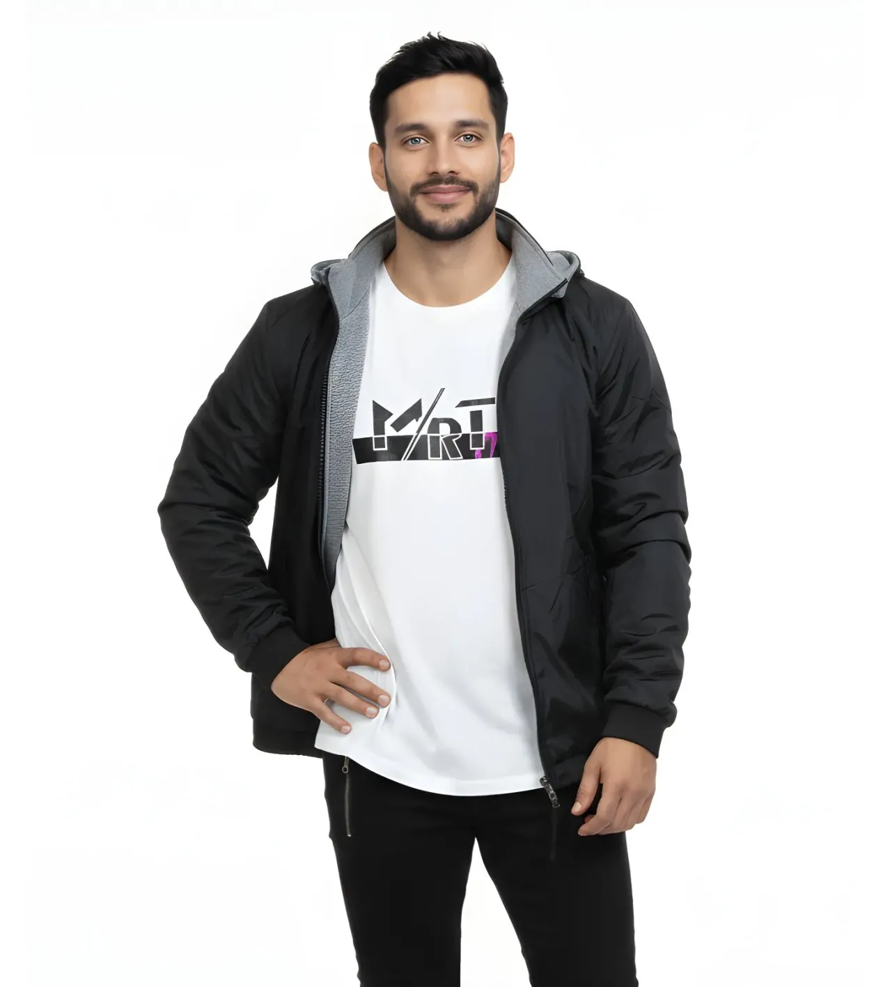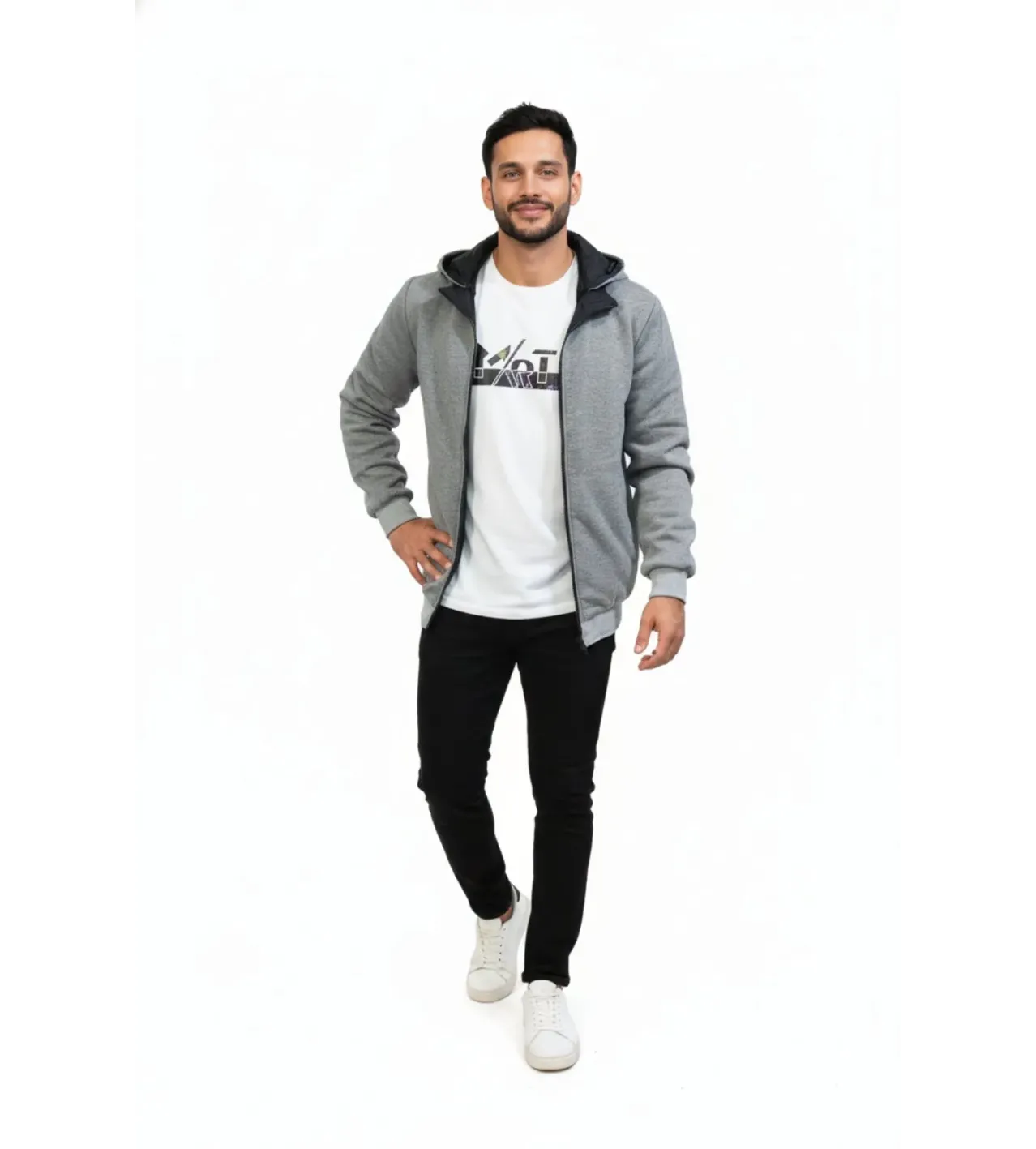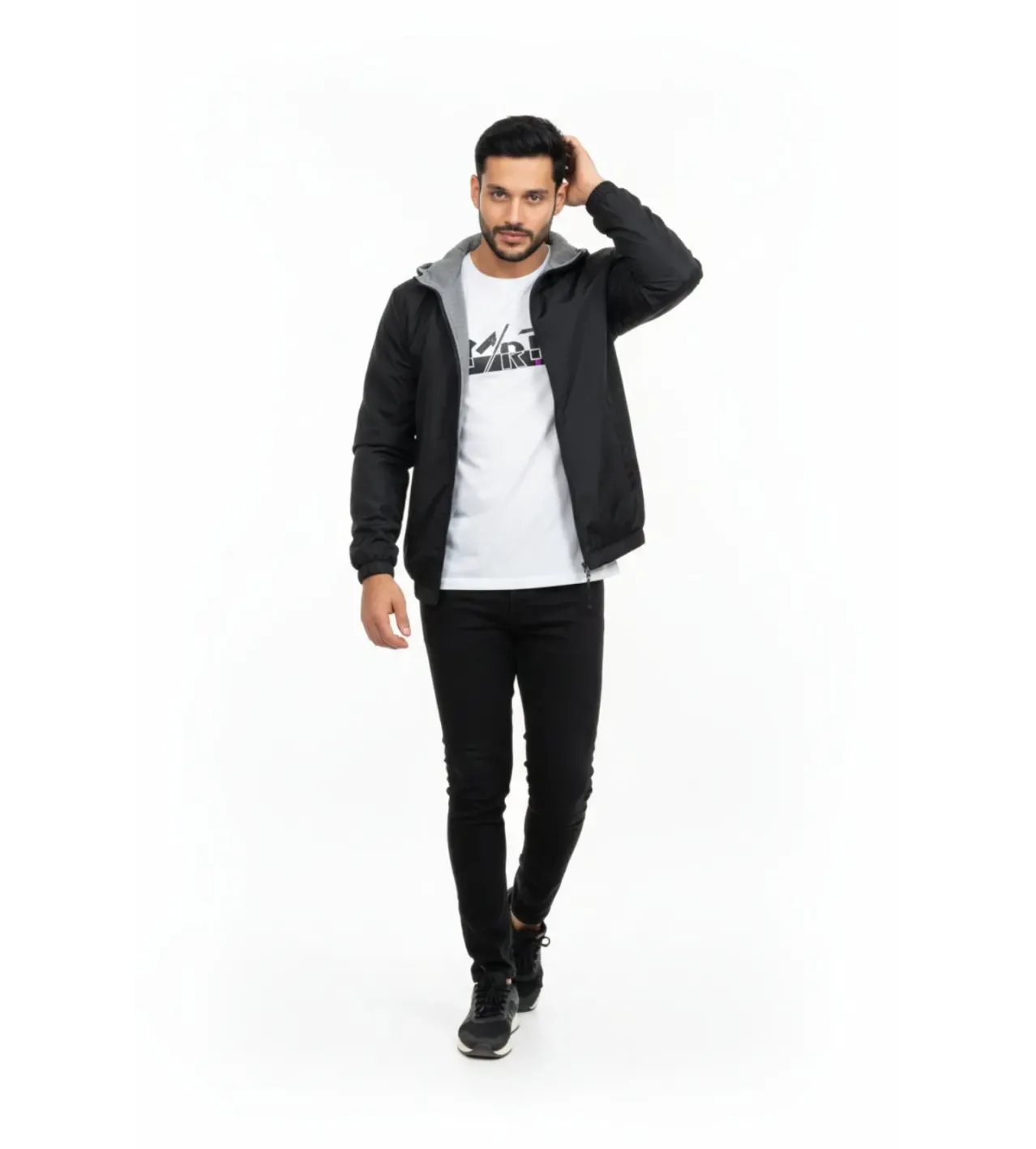 Λεπτό ανδρικό μπουφάν διπλής όψης, που μετατρέπεται σε φούτερ/ζακέτα, προσφέροντας ευελιξία και πρακτικότητα για κάθε περίσταση.